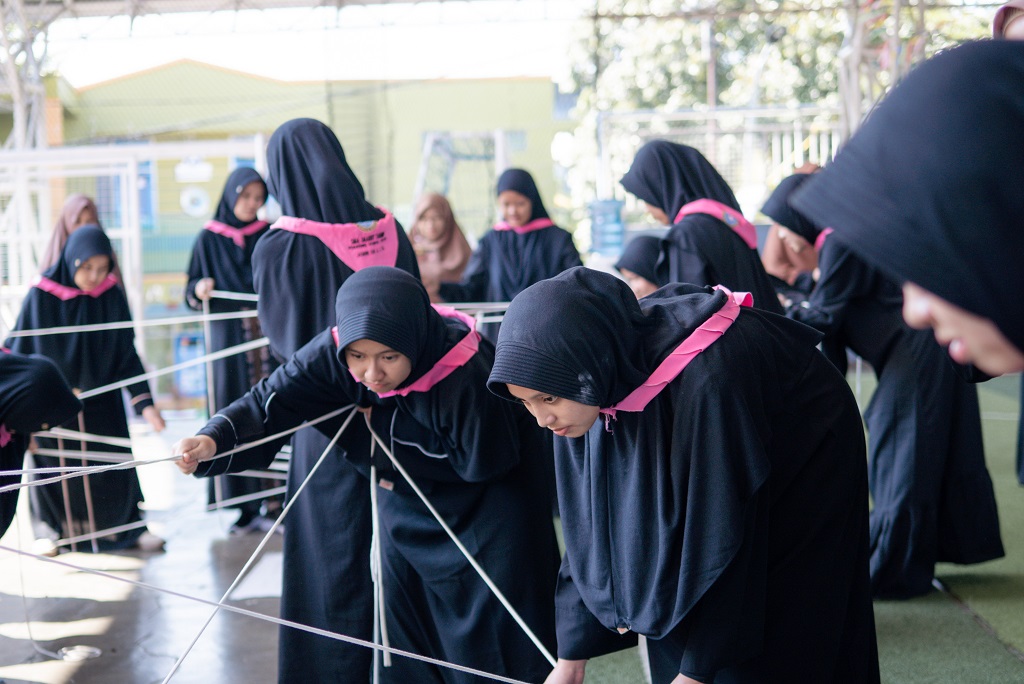 Potret kegiatan MABIMSA (Masa Bimbingan Santri) SMA Daarut Tauhiid Boarding School (DTBS) Putri di Dome Central V, pada Senin (21/7).