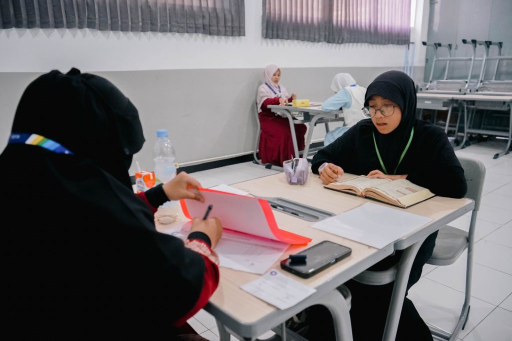 Potret calon santri SMP Daarut Tauhiid Boarding School (DTBS) Putri saat mengikuti tes seleksi PPDB, pada Sabtu (13/9).