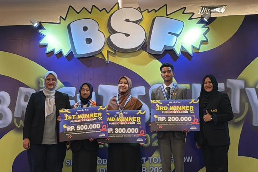 Senin (15/12/2025), potret Khayla Qisya Ariza, santri SMA Daarut Tauhiid Boarding School (DTBS) Putri, saat menerima penghargaan sebagai Juara 2 Public Speaking dalam ajang National Competition – Bright Society Festival 2025.