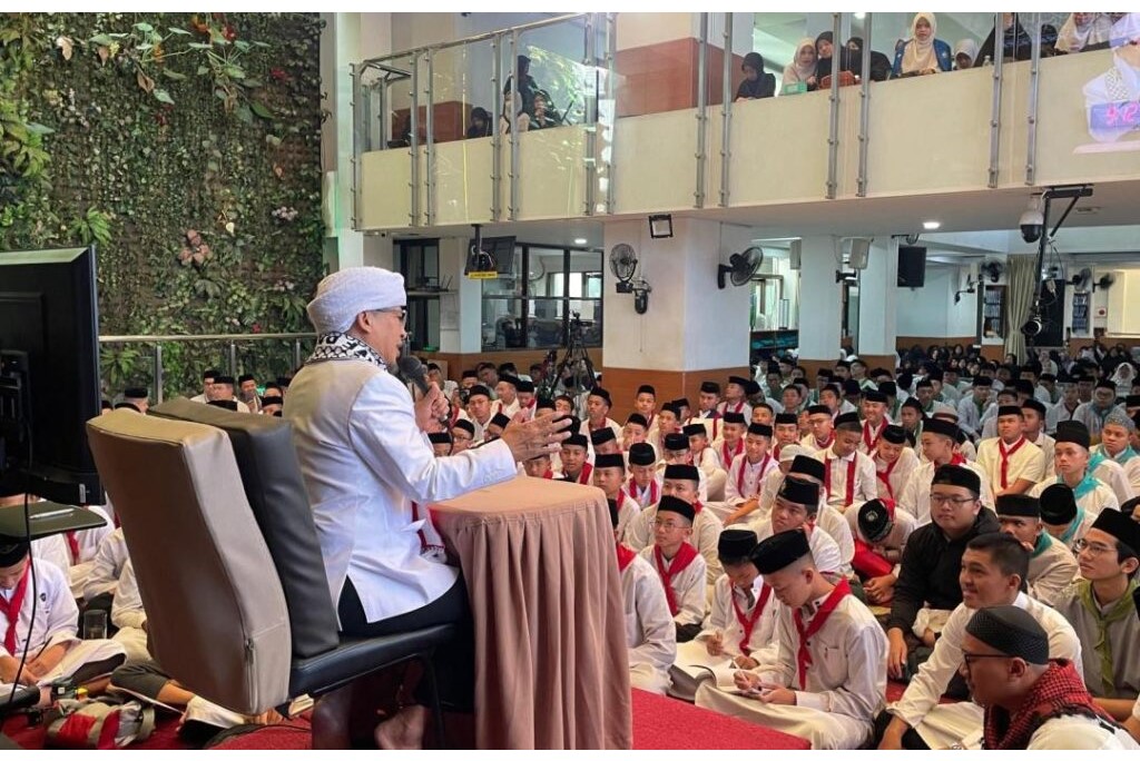 Potret santri Sekolah Daarut Tauhiid Indonesia sedang menyimak kajian Pekan Al-Quds di Masjid Daarut Tauhiid Bandung pada (16/1/2026)