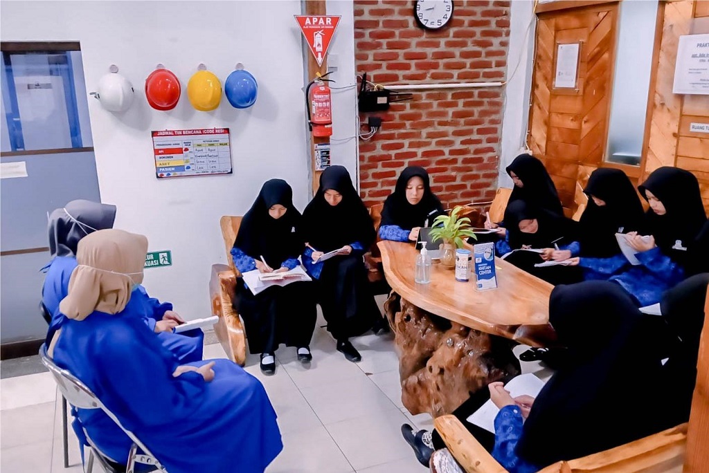 Potret saat santri SMP Daarut Tauhiid Boarding School (DTBS) Putri mengikuti pembelajaran IPA langsung di Klinik Kesehatan Daarut Tauhiid, Rabu (21/1/2026).