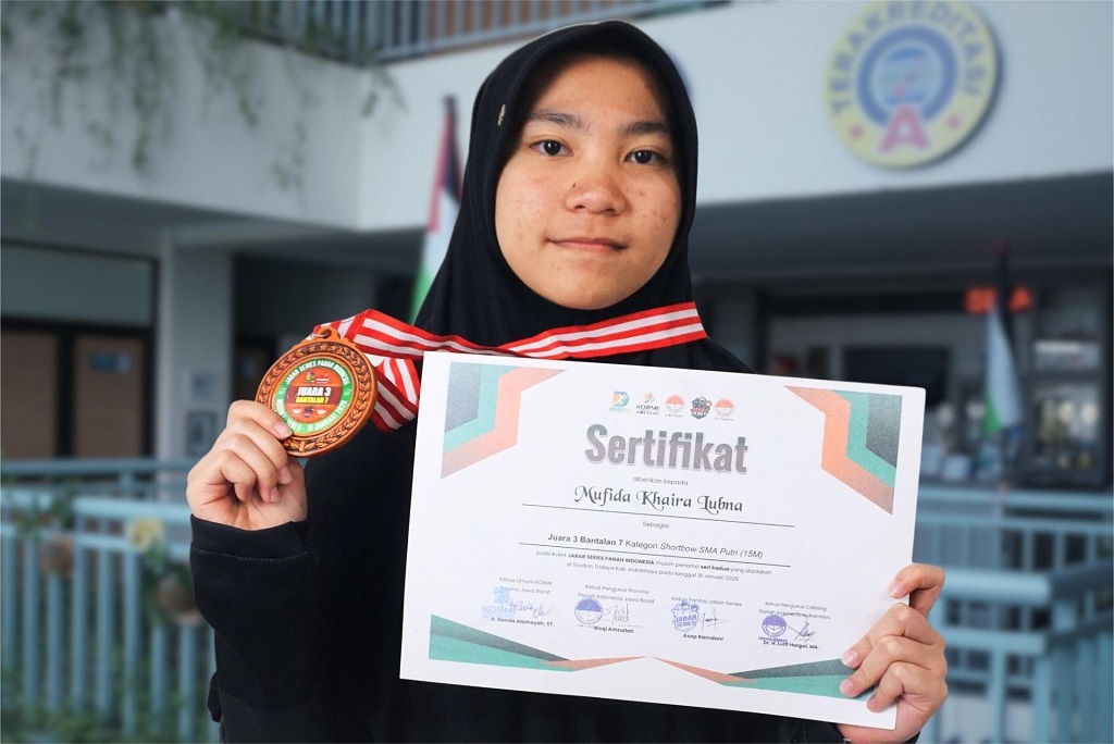 Selamat kepada Mufida Khaira Lubna dari kelas XI-4 SMA DTBS Putri yang telah meraih Juara 3 Bantalan 1 dalam perlombaan Jabar Series Panah Indonesia Seri II, yang diselenggarakan di Stadion Tridaya, Kab. Indramayu, pada Ahad (18/1/2026).