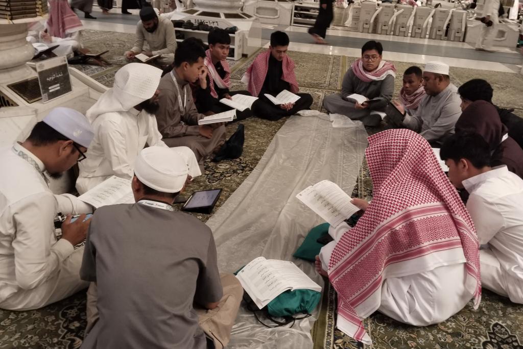 Potret saat santri Sekolah Daarut Tauhiid Indonesia program Immersion Madinah melaksanakan kegiatan Halaqah Al-Quran di Masjid Nabawi, Sabtu (28/3/2026).