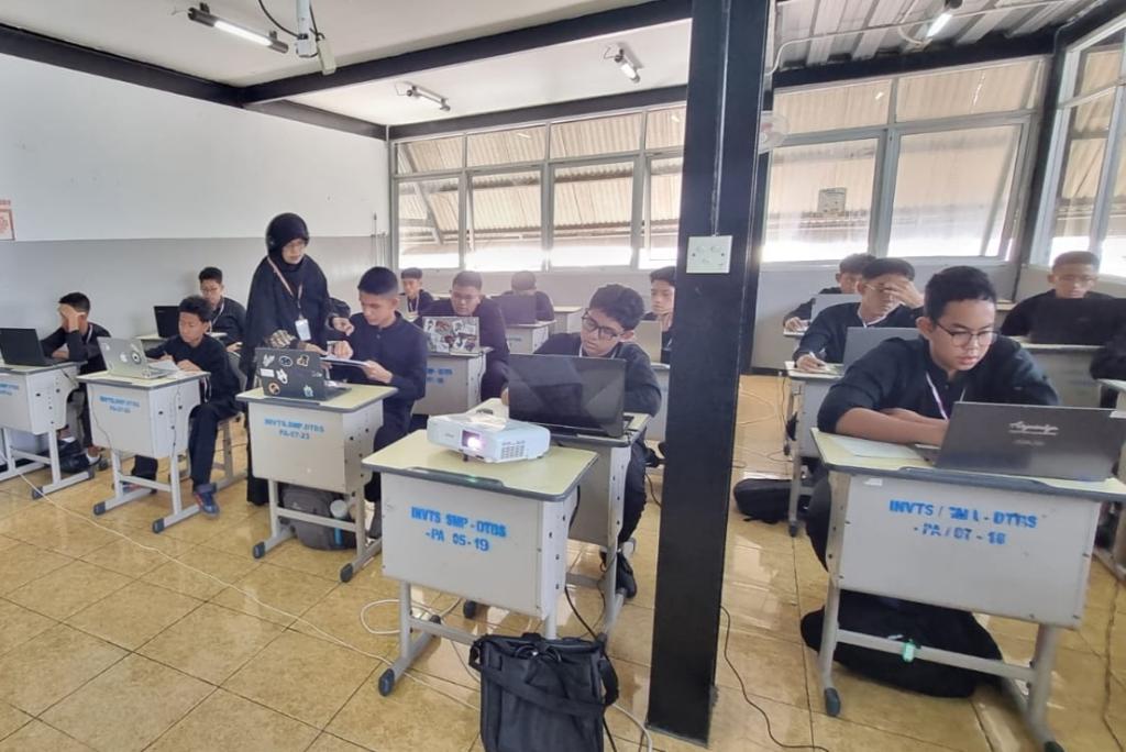Potret saat santri kelas IX SMP Daarut Tauhiid Boarding School (DTBS) Putra mengikuti kegiatan Tes Kemampuan Akademik, Rabu (8/4/2026).