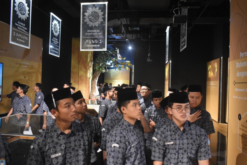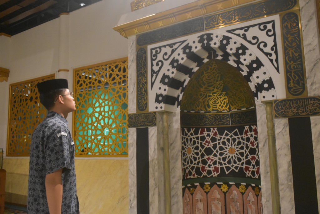 Potret santri SMA DTBS Putra sedang mengamati objek replika Raudhah di Museum Rasulullah, Masjid Al-Jabbar pada (24/10/2025)