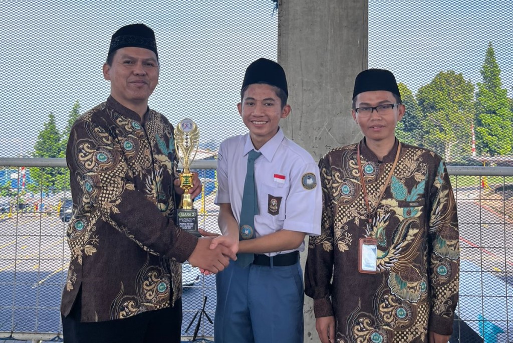 Potret kepala sekolah SMK DTBS menyerahkan piala penghargaan pada (27/10/2025) kepada Fathurrohman Lubis yang telah meraih Juara 2 Lomba Pidato Putra dalam ajang Pentas PAI SMK Tingkat Kota Bandung.