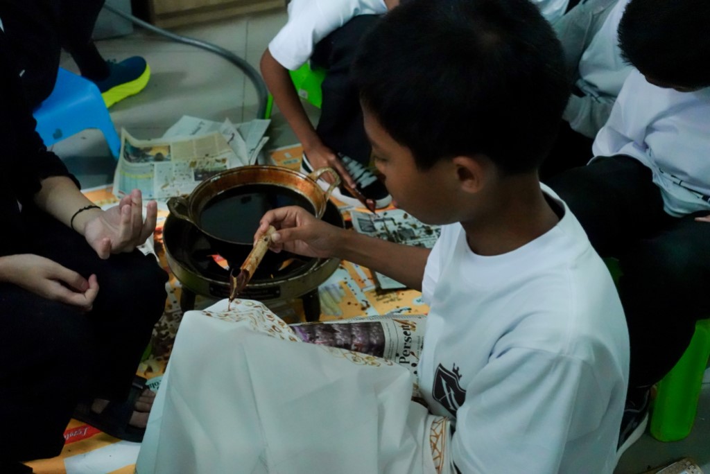 Potret santri sedang praktik membatik saat mengunjungi Batik Komar pada (24/9/2025)