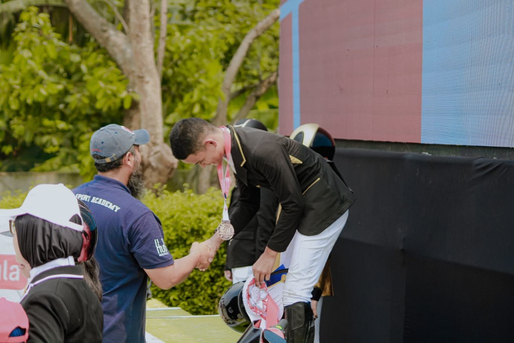 Potret Kaisar Akhtar Firdaus santri SMP DTBS Putra menerima penghargaan pada (9/8/2025) di kejuaraan berkuda The President Cup.