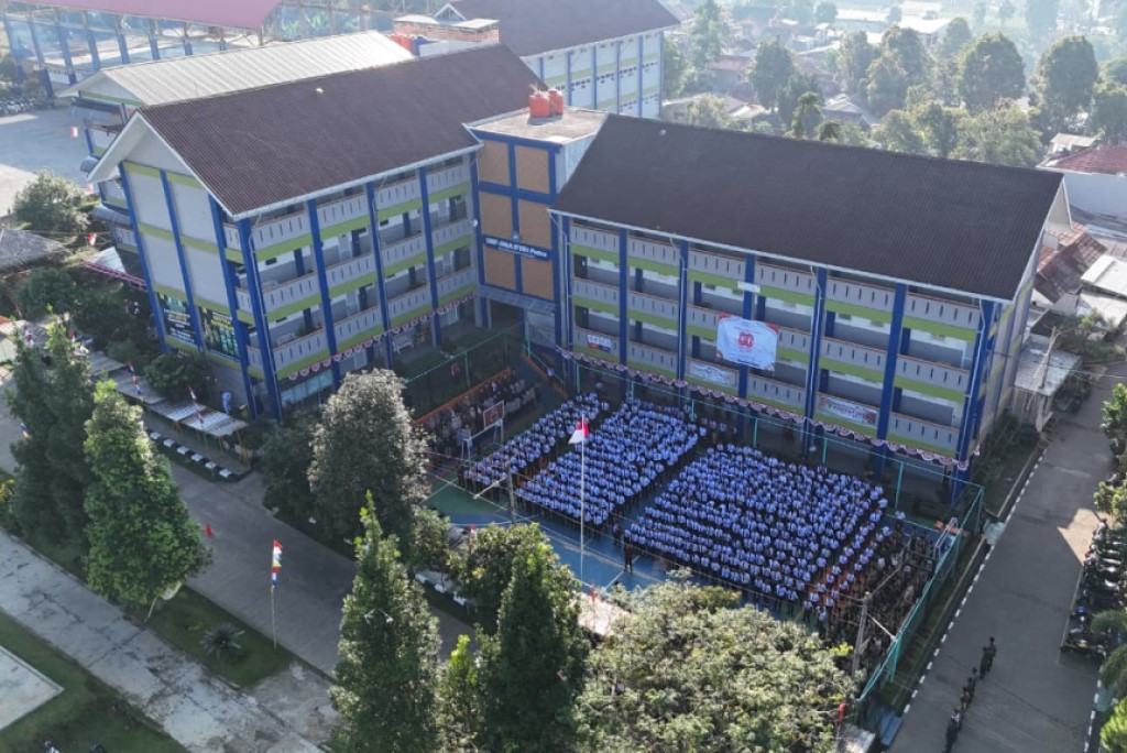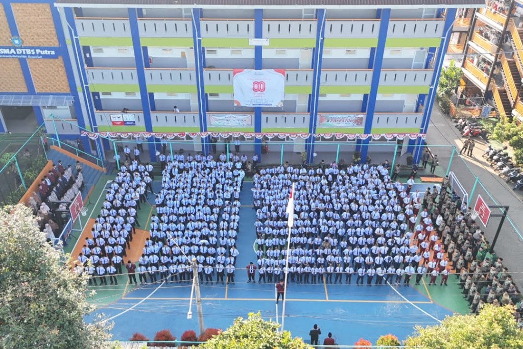 Potret seluruh santri Ikhwan dan civitas Sekolah DT Indonesia melaksanakan Upacara hari Kemerdekaan Republik Indonesia ke-80 pada (17/8/2025) di Lapangan RKB Kampus SMP-SMA DTBS Putra, Kawasan Eco Pesantren 1 Daarut Tauhiid.