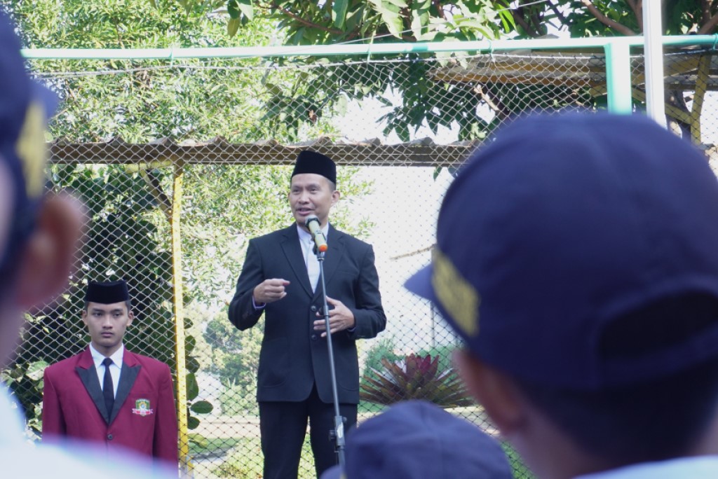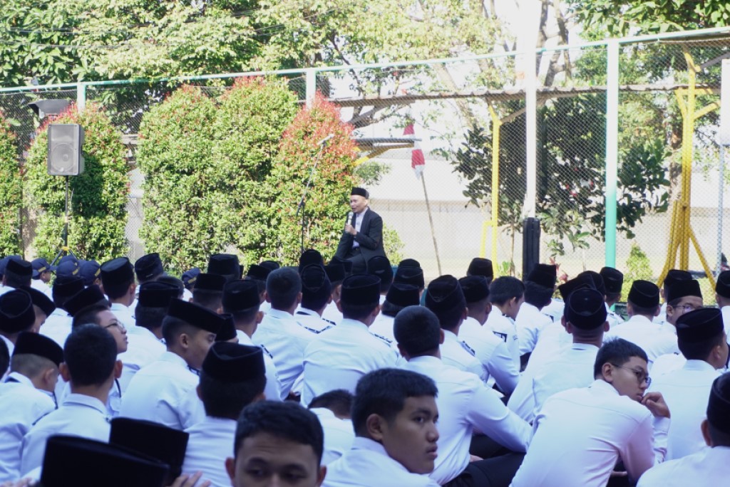 Potret Ketua YDTR, Gatot Kunta Kumara memberi pengarahan kepada seluruh peserta upacara sesaat setelah pelaksanaan Upacara Hari Kemerdekaan RI ke-80 pada (17/8/2025) di Lapangan RKB SMP-SMA DTBS Putra.