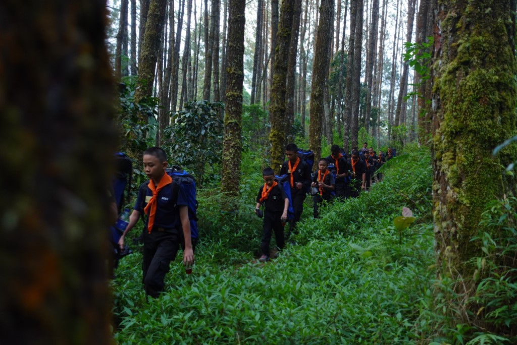 Potret santri berjalan menuju lokasi Mataba di Hutan Cicanggel pada (17/7/2025)