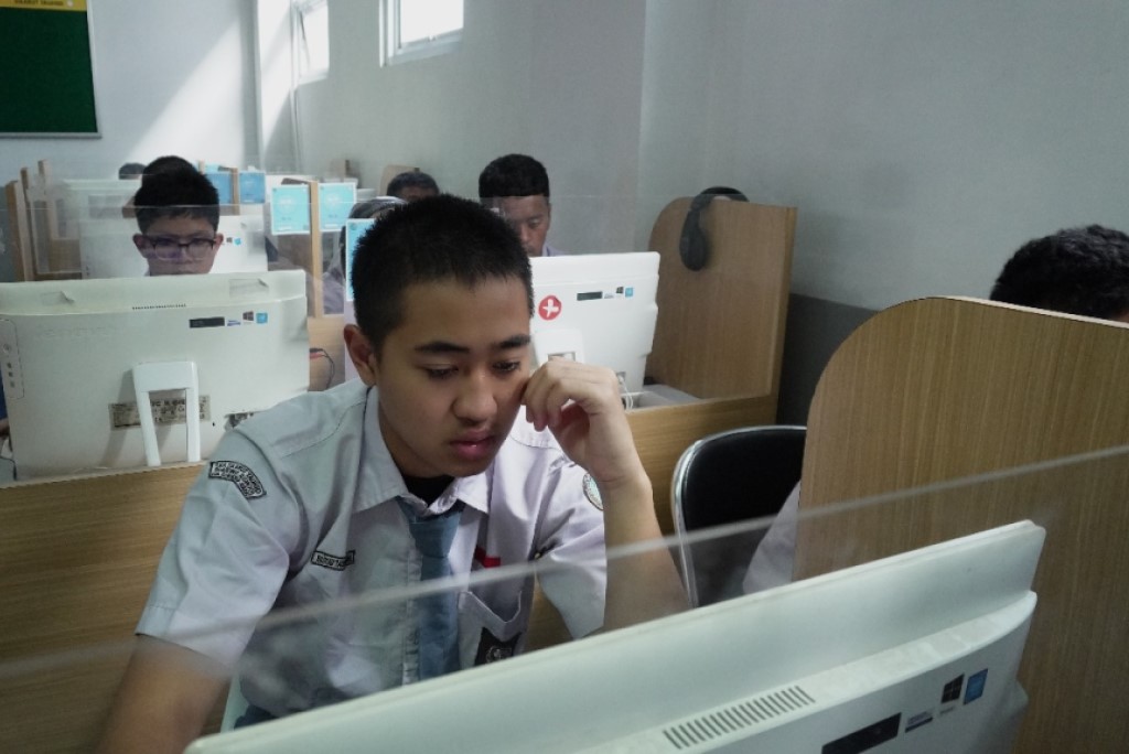 Beradu fokus, Santri SMA DTBS Putra Ikuti OSN dengan Tertib dan Khidmat