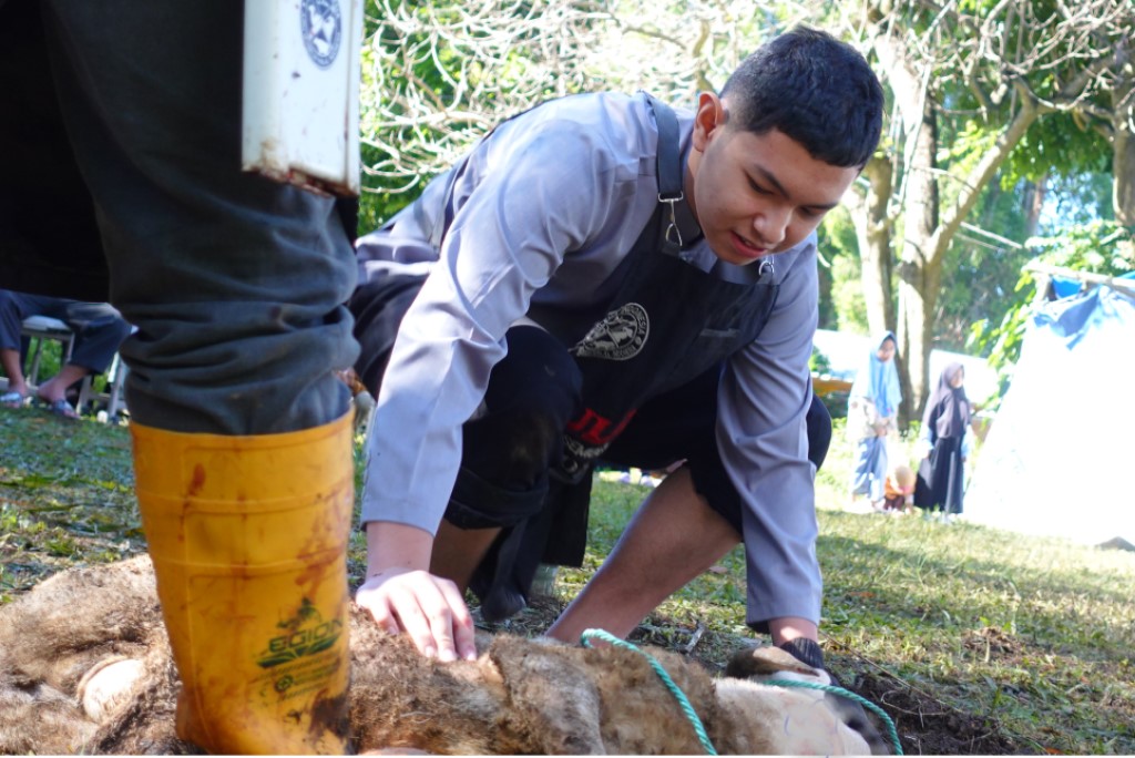 Tunjukkan Keberanian, Raihan Berhasil Sembelih Hewan Qurbannya untuk Pertama Kali