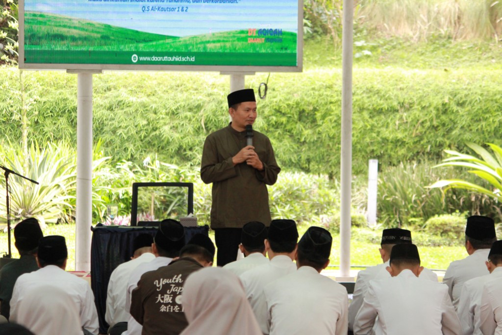 Potret Ketua Yayasan Daarut Tauhiid Rahmatan Li’aalamiin (YDTR) Gatot Kunta Kumara, memberikan sambutannya pada kegiatan Tasyakur Qurban Berkah SDTI (9/6/2025) di Masjid Rahmatan Lil’aalamiin, Eco Pesantren 1 Daarut Tauhid.