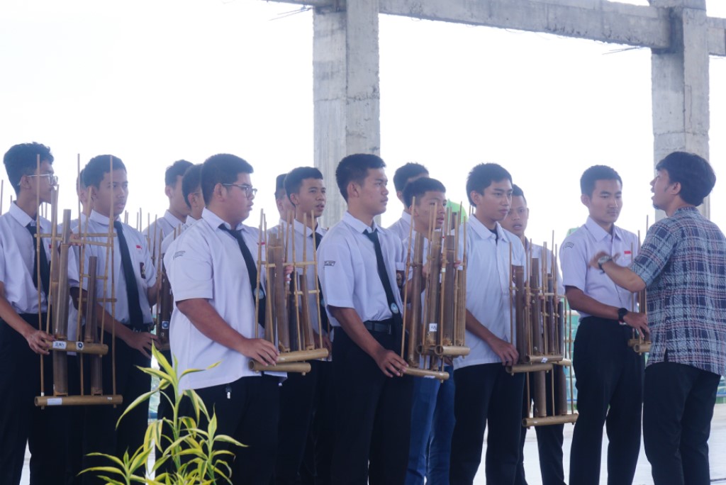 Potret santri sedang berlatih angklung pada (3/2/2026) di Sport Center Eco Pesantren Daarut Tauhiid, sebagai persiapan DTS Festival 2026.