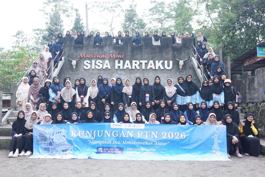 Potret saat santri SMA Daarut Tauhiid Boarding School (DTBS) Putri berkunjung ke Museum Mini Sisa Hartaku, Kamis (9/4/2026).