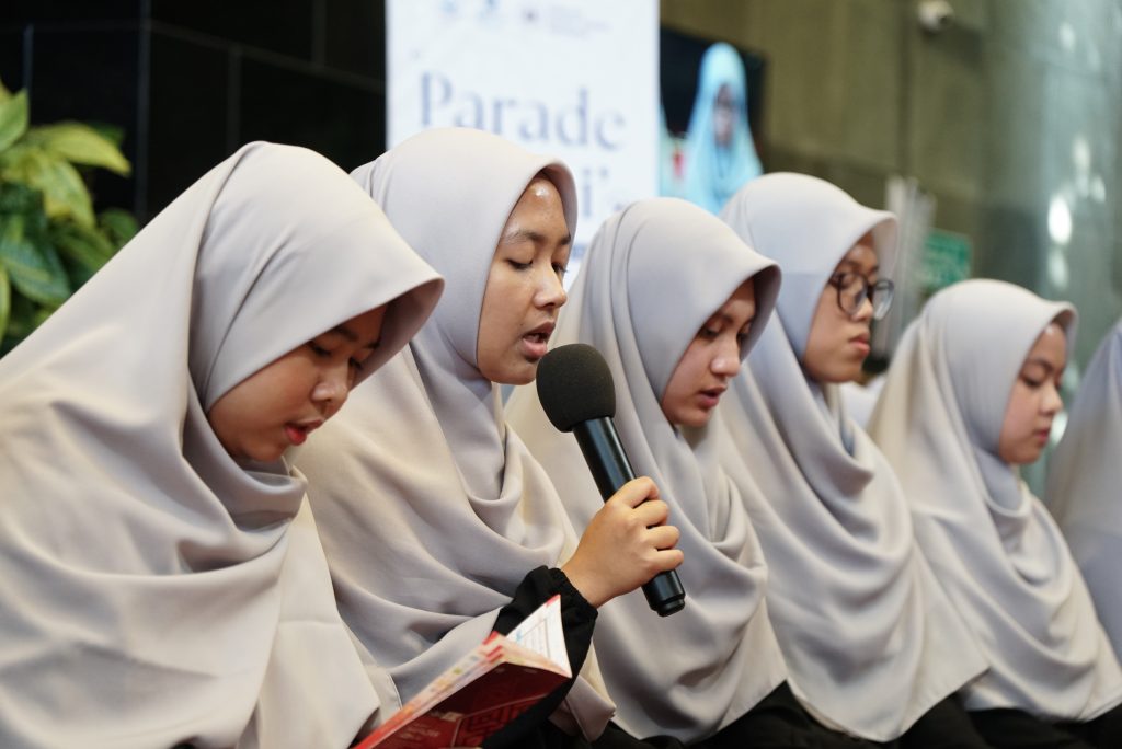 Potret saat santri SMA Daarut Tauhiid Boarding School (DTBS) Putri melaksanakan kegiatan Parade Tasmi hari pertama di Masjid Daarut Tauhiid ...