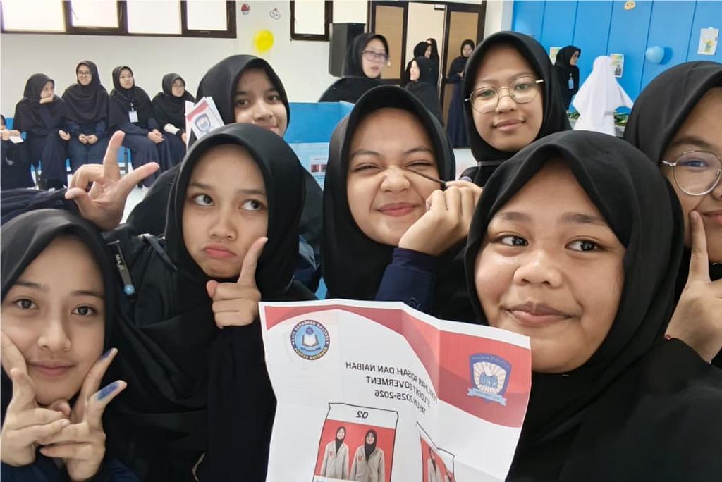 Potret santri SMA Daarut Tauhiid Boarding School (DTBS) Putri saat mengikuti kegiatan PEMILU (Pemilihan Umum) OSIS yang berlangsung pada Senin (1/9/2025).