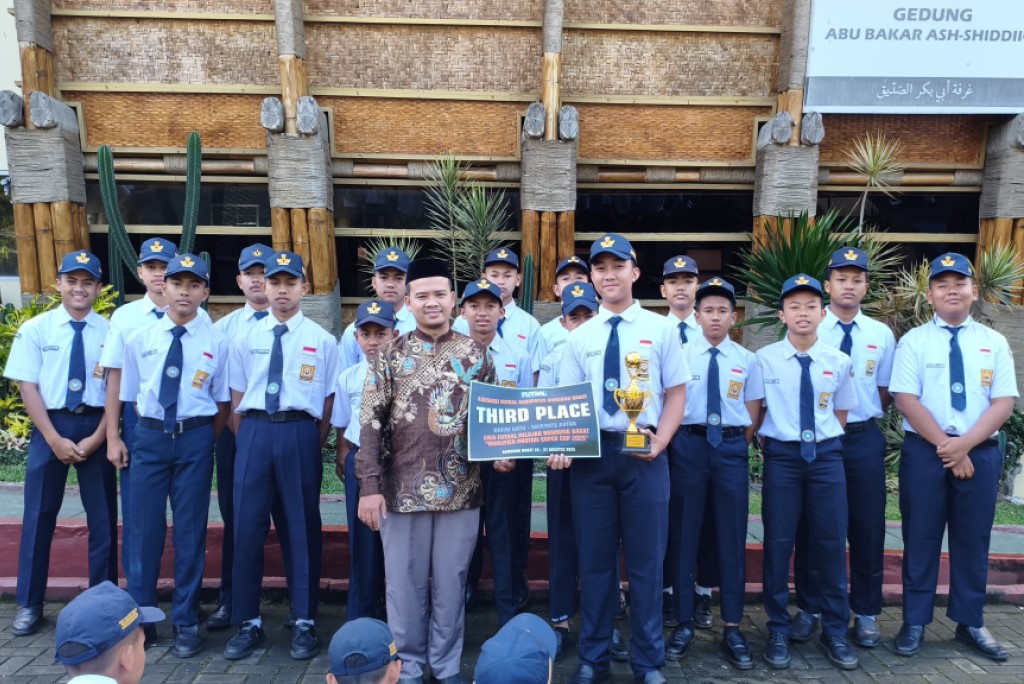 Potret penyerahan penghargaan kepada Tim Futsal SMP DTBS Putra pada (1/9/2025) di Lapangan Upacara, Kawasan Eco Pesantren 1 Daarut Tauhiid.