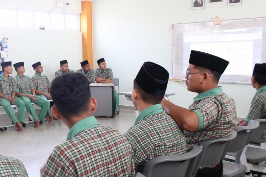 Potret saat Organisasi Santri Daarut Tauhiid (OSDT) Ikhwan melaksanakan kegiatan rapat laporan bulanan periode Februari-Maret, Rabu (15/4/2026).